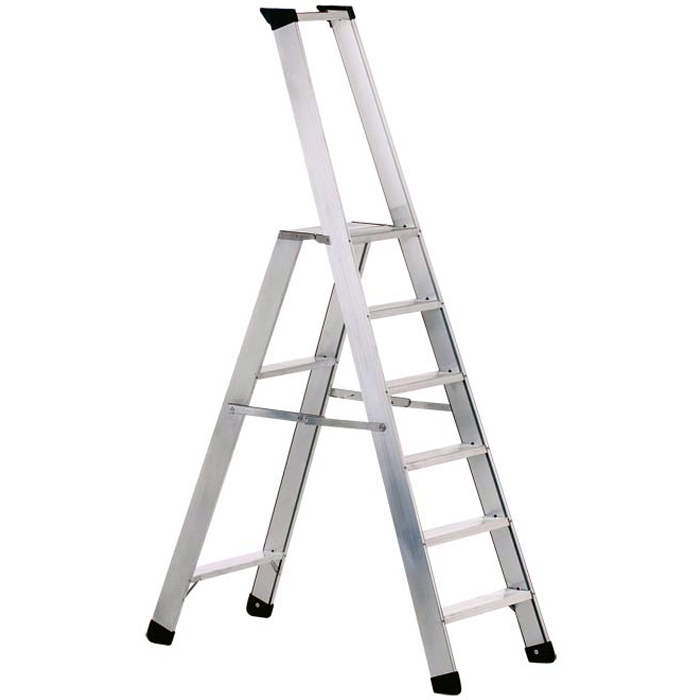 Godkänd trappstege enligt Bra arbetsmiljöval. Arbetsplattform på 380×260 mm. Finns i olika utföranden från 3 till 10 steg.